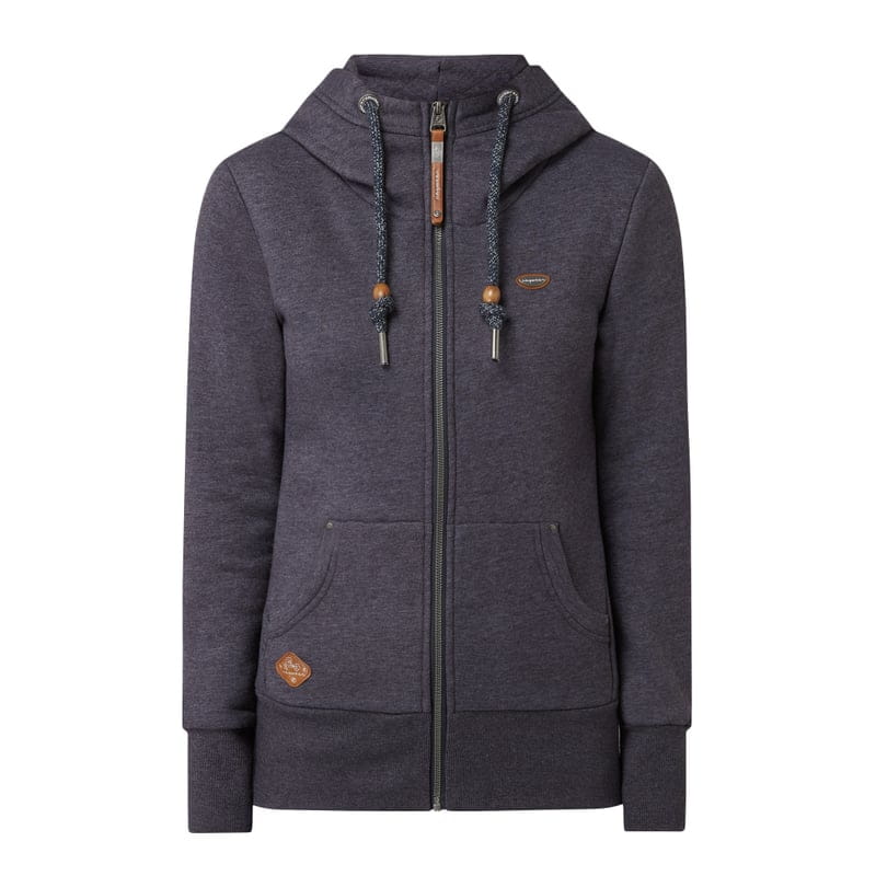 Bluza rozpinana damska Ragwear, Mieszanka bawełny , Prosty krój , Stójka z kapturem i tunelem, Zamek błyskawiczny , Wpuszczane kieszenie, Odznaczające się ściągacze, Detale z logo , Długość tyłu w rozmiarze S: 66 cm , Długość rękawa w rozmiarze S: 66 cm