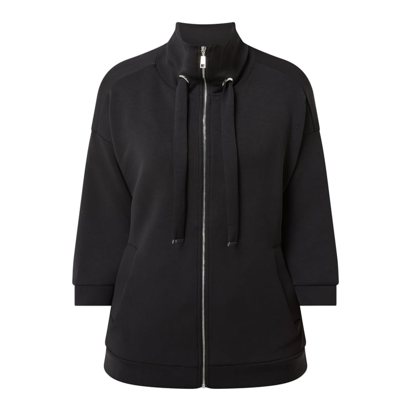 Bluza rozpinana damska comma , Mieszanka modalu z dodatkiem streczu , Taliowany krój , Wykładany kołnierz , Obniżone ramiona , Rękaw o dł. 3/4 , Zamek błyskawiczny , Wpuszczane kieszenie , Długość tyłu w rozmiarze 36: 63 cm