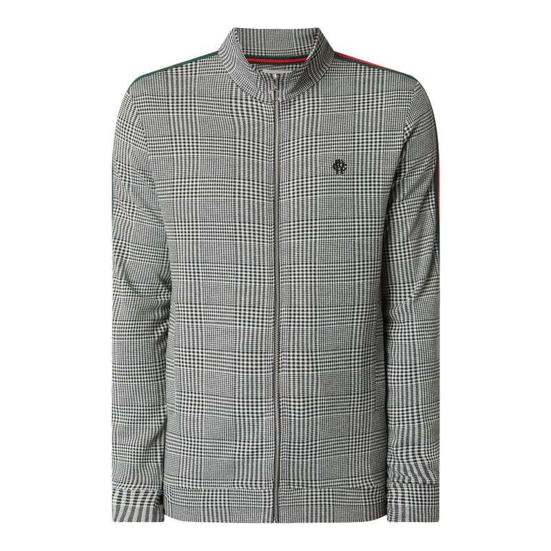 Bluza rozpinana męska MCNEAL, Mieszanka materiałów z dodatkiem wiskozy i streczu , Prosty krój , Krata glencheck, Stójka , Zamek błyskawiczny , Wyhaftowane logo na wysokości piersi , Boczne wpuszczane kieszenie , Paski w kontrastowym kolorze, Prążkowane ściągacze na rękawach i na dole , Długość tyłu w rozmiarze M: 71,5 cm , Długość rękawa w rozmiarze M: 66,5 cm