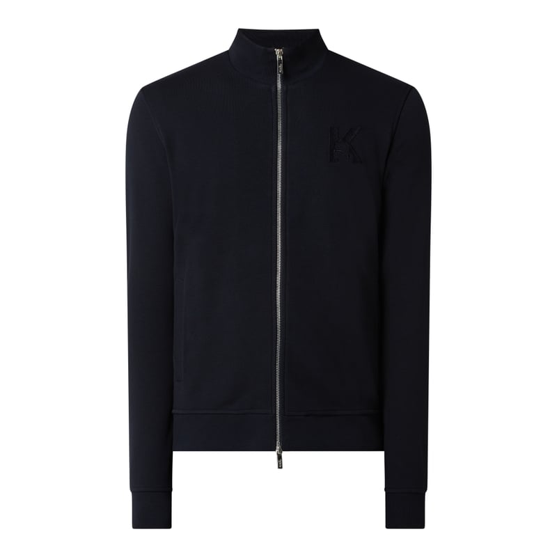Bluza rozpinana męska KARL LAGERFELD, Mieszanka bawełny , Prosty krój , Stójka , Zamek błyskawiczny dwustronny , Wyhaftowane logo na wysokości piersi , Boczne wpuszczane kieszenie , Prążkowane ściągacze na rękawach i na dole , Długość tyłu w rozmiarze M: 68 cm , Długość rękawa w rozmiarze M: 69,5 cm