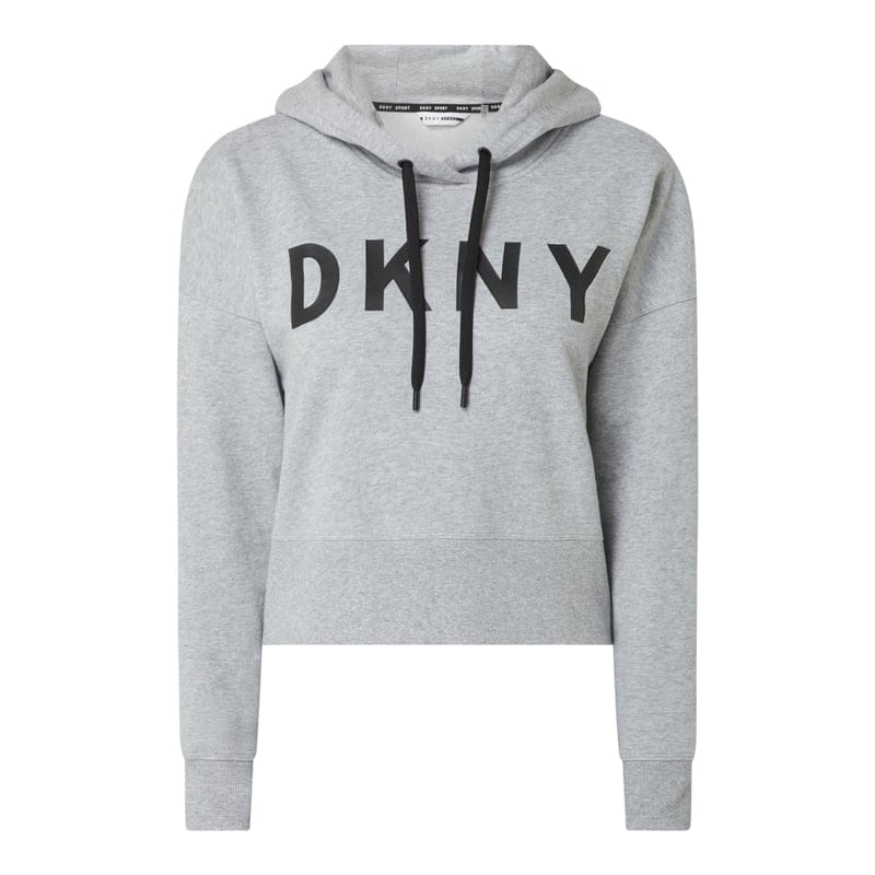 Bluza z kapturem damska DKNY PERFORMANCE, Mieszanka bawełny , Krój krótki , Kaptur z tunelem , Obniżone ramiona , Długie rękawy , Nadruk z logo , Długość tyłu w rozmiarze S: 48 cm