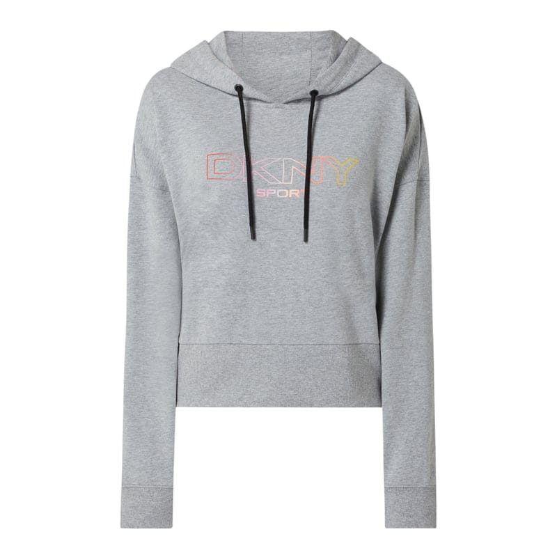 Bluza z kapturem damska DKNY PERFORMANCE, Mieszanka bawełny i elastanu, Luźny krój, Kaptur z tunelem, Obniżone ramiona, Logo, Prążkowane wykończenia, Długość tyłu w rozmiarze S: 51 cm