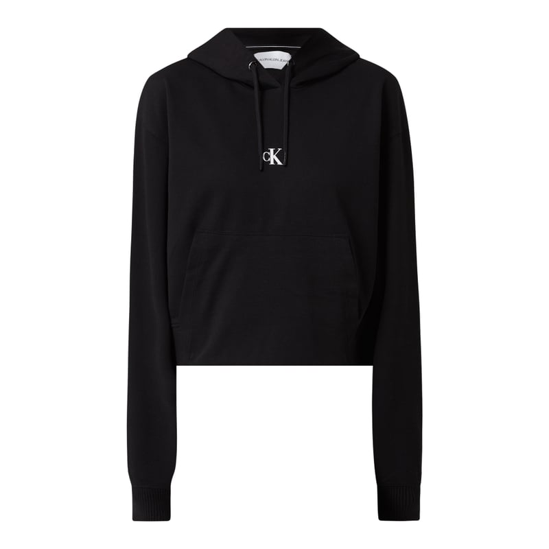 Bluza z kapturem damska Calvin Klein Jeans , Czysta bawełna , Luźny krój , Kaptur z tunelem , Obniżone ramiona , Nadruki z logo z przodu i z tyłu , Długość rękawa w rozmiarze S: 59 cm, Długość tyłu w rozmiarze S: 49 cm