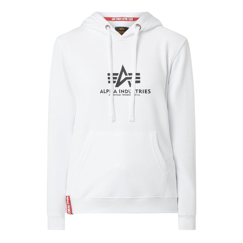 Bluza z kapturem damska Alpha Industries, Mieszanka bawełny , Luźny krój , Kaptur z tunelem , Kieszeń kangurka, Odznaczające się brzegi , Nadruk z logo , Długość tyłu w rozmiarze S: 61 cm, Długość rękawa w rozmiarze S: 60 cm