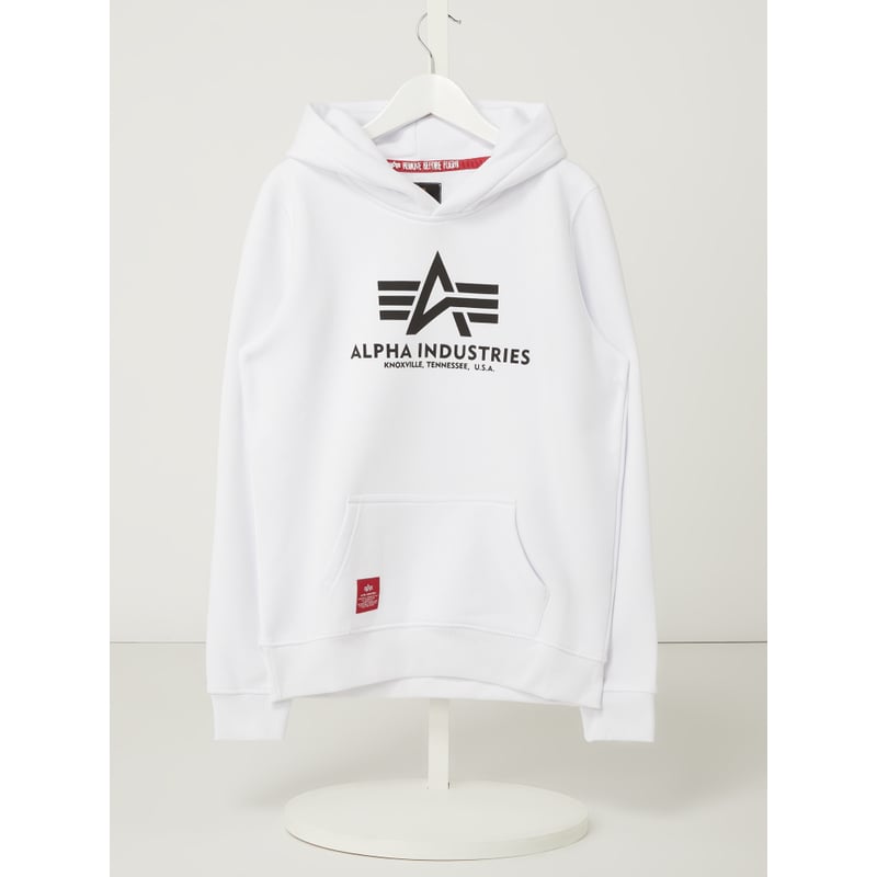 Bluza z kapturem młodzieżowa Alpha Industries, Mieszanka bawełny , Prosty krój , Kaptur, Nadruk z logo , Kieszeń kangurka , Prążkowane ściągacze na rękawach i na dole , Długość tyłu w rozmiarze 152: 58 cm , Długość rękawa w rozmiarze 152: 58,5 cm