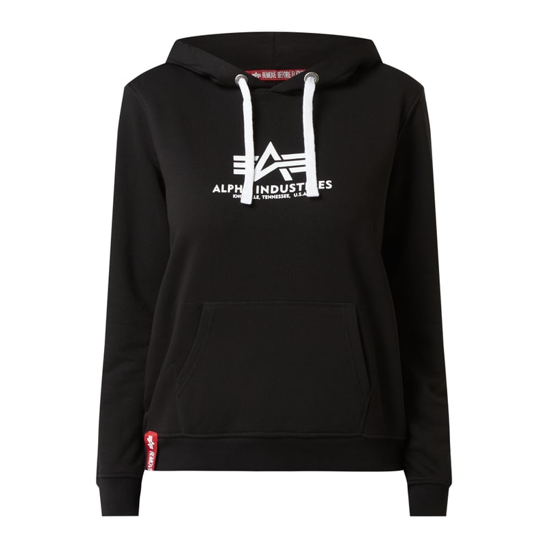 Bluza z kapturem damska Alpha Industries, Mieszanka bawełny , Luźny krój , Dzianina dresowa , Kaptur z tunelem , Kieszeń kangurka , Prążkowane ściągacze , Nadruk z logo , Aplikacja z logo, Długość tyłu w rozmiarze S: 65 cm , Długość rękawa w rozmiarze S: 62 cm