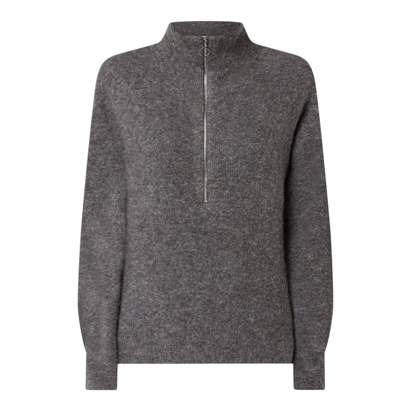 Bluza z kołnierzem damska REVIEW, Mieszanka materiałów z dodatkiem wełny i streczu , Luźny krój, Gładka dzianina, Stójka, Obniżone ramiona , Krótki zamek błyskawiczny , Prążkowane wykończenia , Długość tyłu w rozmiarze S: 53 cm