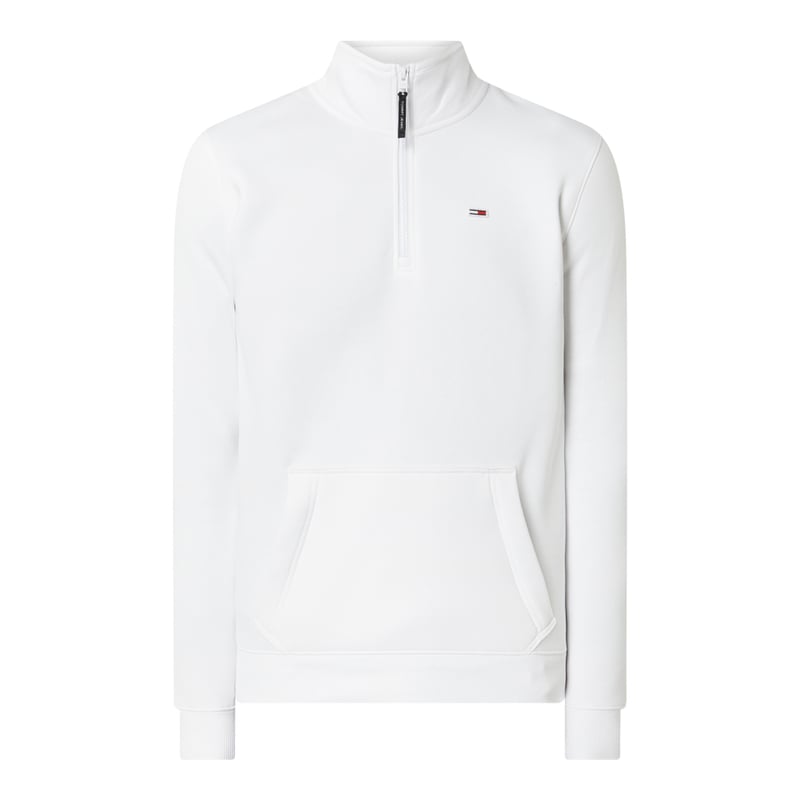 Bluza z kołnierzem męska Tommy Jeans, Mieszanka bawełny , Prosty krój , Stójka , Krótki zamek błyskawiczny , Naszywka z logo na piersi , Kieszeń kangurka zapinana na zamek błyskawiczny, Prążkowane ściągacze na rękawach i na dole , Długość tyłu w rozmiarze M: 71 cm , Długość rękawa w rozmiarze M: 68,5 cm