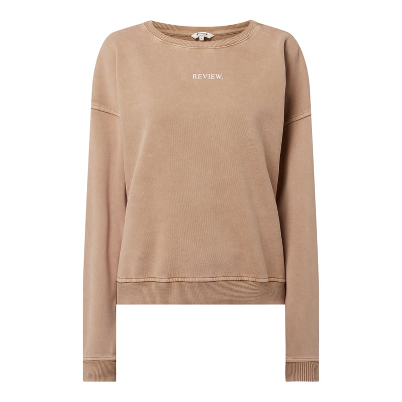 Bluza damska REVIEW, Czysta bawełna , Luźny krój , Okrągły dekolt , Obniżone ramiona , Odznaczające się ściągacze, Nadruk z logo , Długość tyłu w rozmiarze S: 55 cm