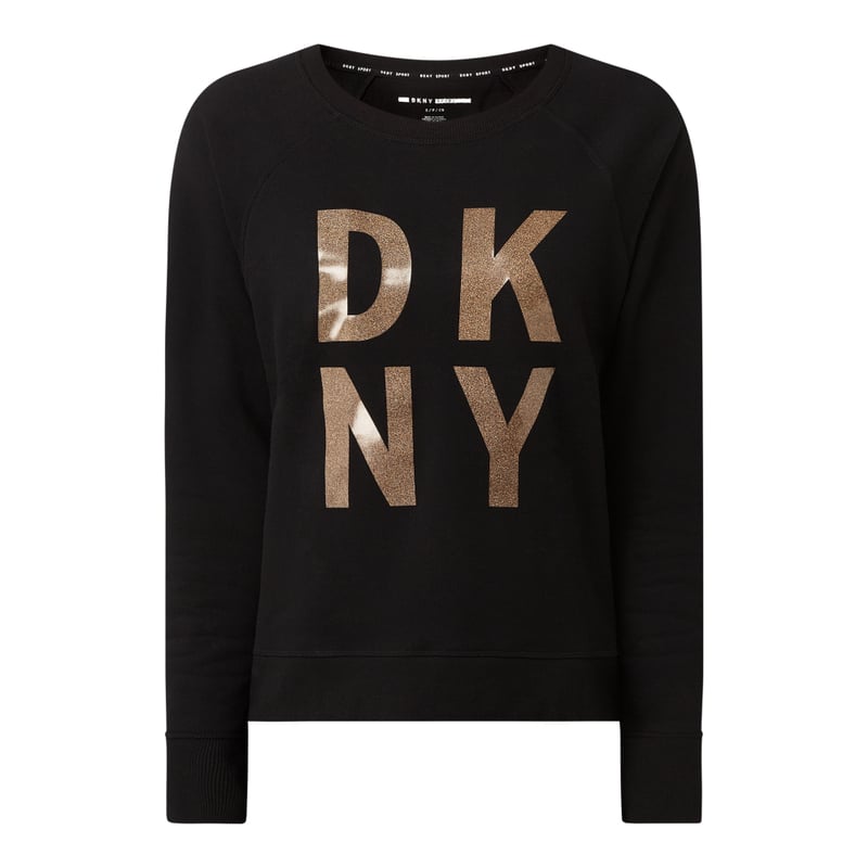 Bluza damska DKNY , Mieszanka bawełny , Luźny krój , Okrągły dekolt , Raglanowe rękawy, Odznaczające się brzegi, Nadruk z logo , Długość tyłu w rozmiarze S: 54 cm