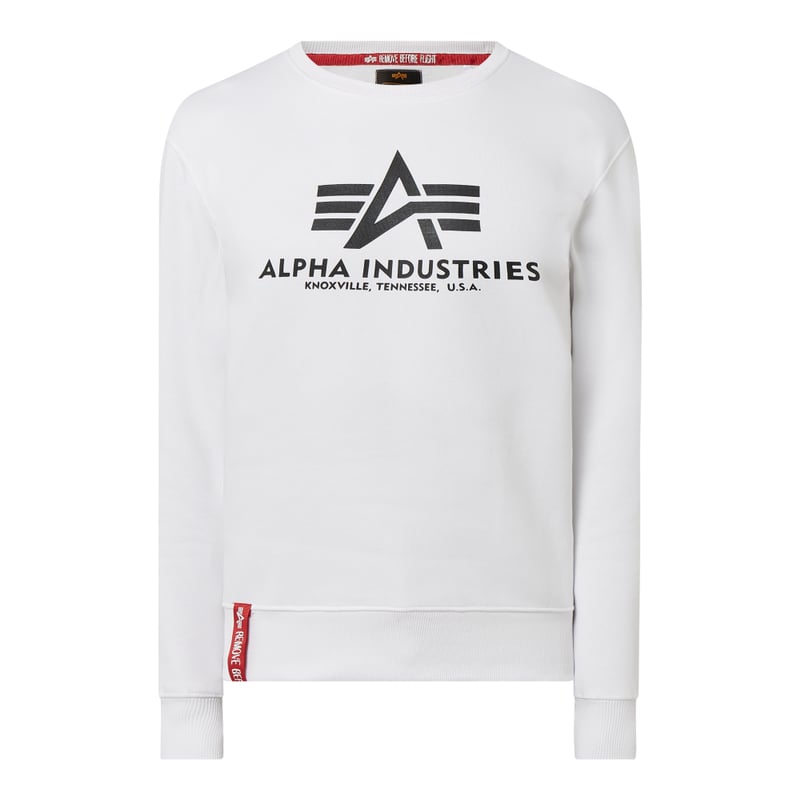 Bluza męska Alpha Industries, Mieszanka bawełny , Luźny krój , Okrągły dekolt , Nadruk , Logo , Miękka strona wewnętrzna , Długość tyłu w rozmiarze M: 70 cm , Długość rękawa w rozmiarze M: 62 cm