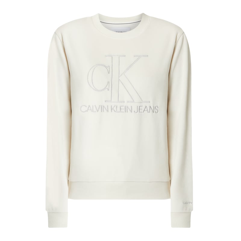 Bluza damska Calvin Klein Jeans, Czysta bawełna, Prosty krój , Plusz, Okrągły dekolt , Odznaczające się brzegi, Wyhaftowane logo, Długość tyłu w rozmiarze S: 56 cm, Długość rękawa w rozmiarze S: 61 cm