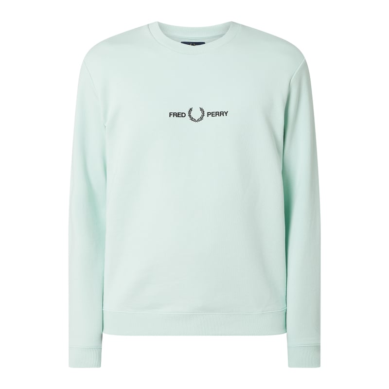 Bluza męska Fred Perry, Czysta bawełna , Prosty krój , Okrągły dekolt , Prążkowane wykończenia , Wyhaftowane logo , Długość tyłu w rozmiarze M: 69 cm, Długość rękawa w rozmiarze M: 67 cm