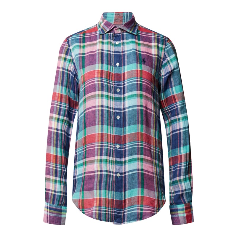 Bluzka koszulowa damska Polo Ralph Lauren, Czysty len, Krój classic fit, Kratka glencheck, Kołnierzyk typu cutaway, Listwa guzikowa na całej długości, Wyhaftowane logo, Mankiety zapinane na 1 guzik, Zaokrąglony dół, Długość tyłu w rozmiarze S: 71 cm, Długość rękawa w rozmiarze S: 66 cm