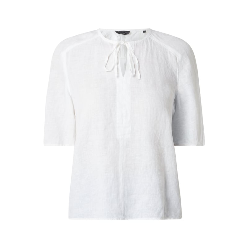 Bluzka damska MARC O’POLO, Czysty len, Taliowany krój , Okrągły dekolt , Wiązane wycięcie w kształcie łezki , Rękaw o dł. 1/2 , Długość tyłu w rozmiarze 36: 62 cm