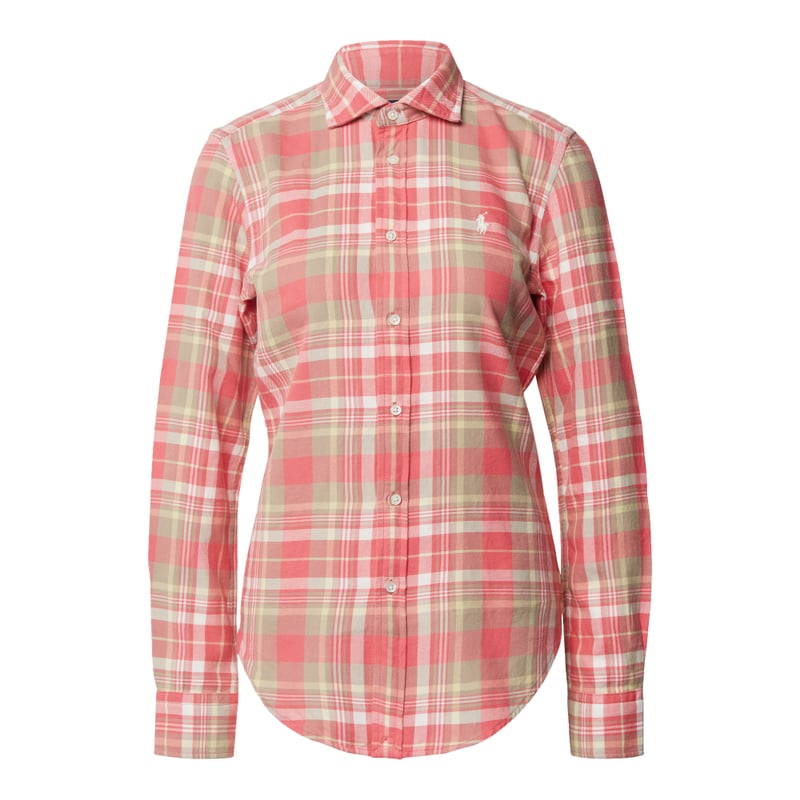 Bluzka damska Polo Ralph Lauren, Czysta bawełna, Krój classic fit, Wzór w kratę, Bluzka z kołnierzem, Listwa guzikowa, Wyhaftowane logo, Zaokrąglony dół, Długość tyłu w rozmiarze S: 69 cm, Długość rękawa w rozmiarze S: 63 cm