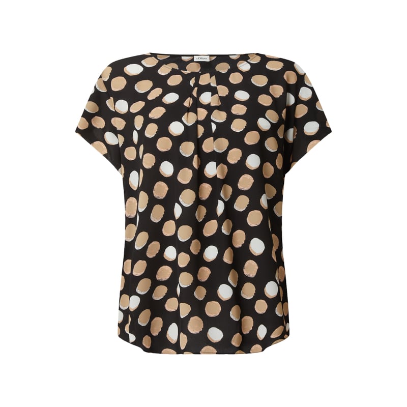 Bluzka damska s.Oliver BLACK LABEL, Lekki materiał, Luźny krój, Wzór na całej powierzchni , Okrągły dekolt , Długość tyłu w rozmiarze 36: 57 cm