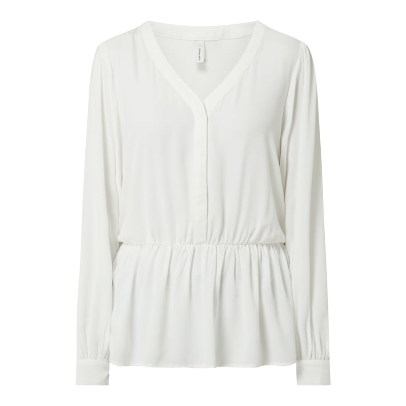 Bluzka damska soyaconcept, Mieszanka materiałów z poliestrem z recyklingu , Luźny krój , Dekolt w serek , Długie rękawy z wykończeniem z guzikami, Baskinka , Drobne marszczenia, Długość tyłu w rozmiarze S: 63 cm, Długość rękawa w rozmiarze S: 62 cm