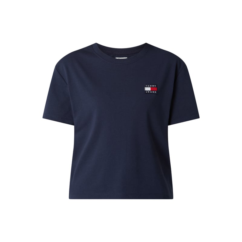 Bluzka damska Tommy Jeans , Mieszanka materiałów z bawełną z recyklingu, Krótki taliowany krój, Okrągły dekolt , Obniżone ramiona , Naszywka z logo , Długość tyłu w rozmiarze S: 50 cm