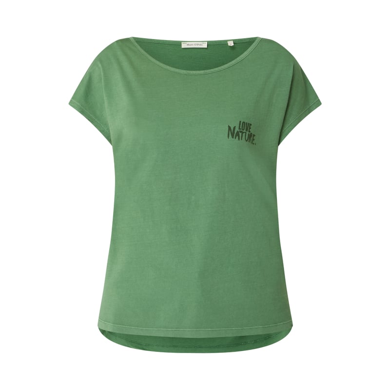 Bluzka damska MARC O’POLO, Czysta bawełna ekologiczna, Prosty krój, Okrągły dekolt, Krótkie, ukośnie skrojone rękawy, Nadruk, Długość tyłu w rozmiarze S: 59 cm