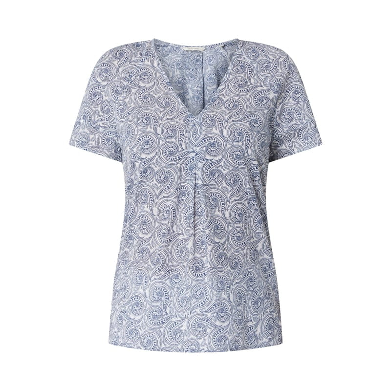 Bluzka damska MARC O'POLO , Czysta bawełna ekologiczna , Krój rozkloszowany , Wzór na całej powierzchni , Dekolt w serek , Krótkie rękawy raglanowe , Kontrafałdy , Długość tyłu w rozmiarze 36: 60 cm