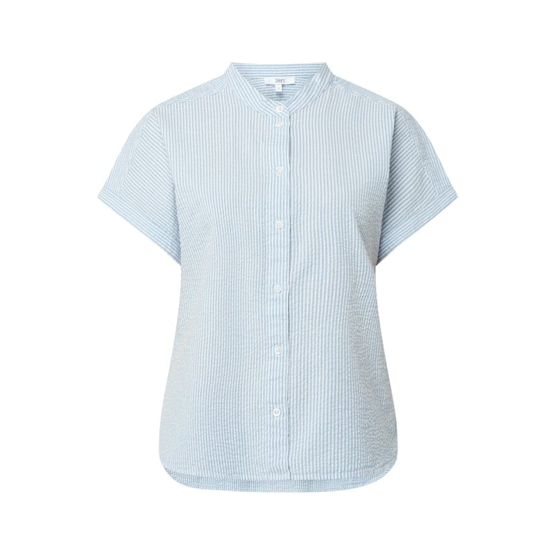 Bluzka damska Jake*s Casual, Czysta bawełna , Szeroki krój , Bawełna seersucker , Wzór w paski , Okrągły dekolt , Krótkie, ukośnie skrojone rękawy , Listwa guzikowa , Zaokrąglony dół , Długość tyłu w rozmiarze 36: 61 cm