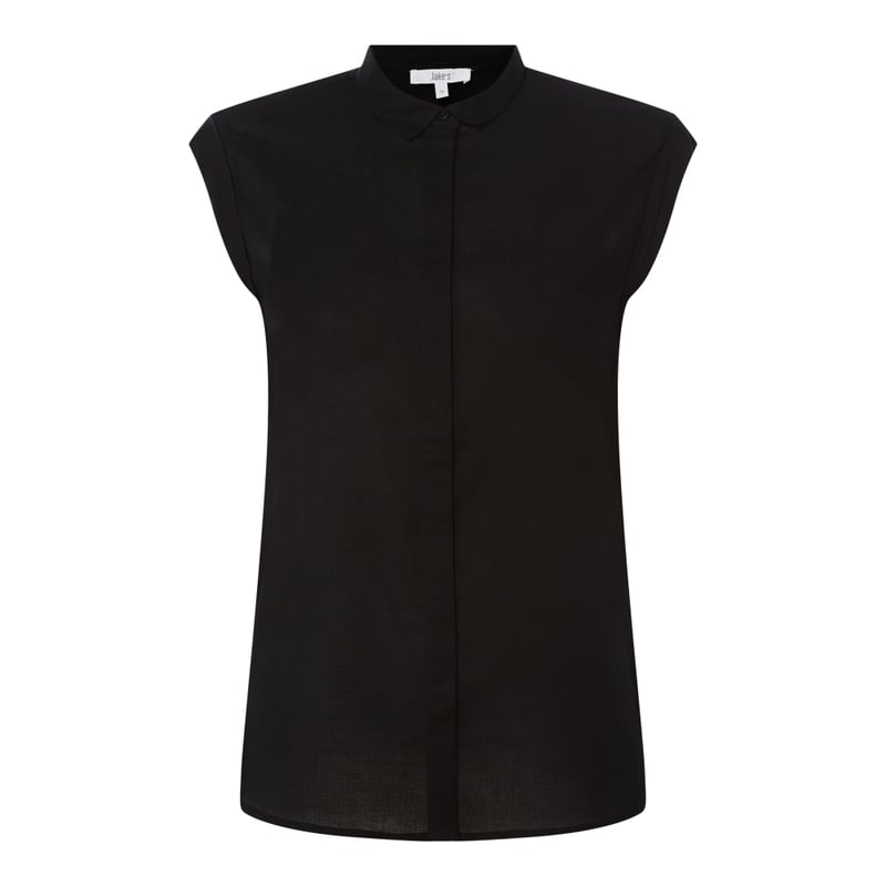 Bluzka damska Jake*s Casual, Czysta bawełna , Taliowany krój, Wykładany kołnierz , Kryta listwa guzikowa , Bardzo krótkie rękawy typu kimono , Długość tyłu w rozmiarze 36: 63,5 cm