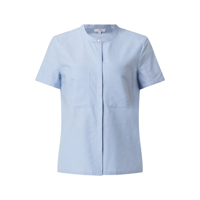 Bluzka damska Jake*s Casual, Czysta bawełna , Prosty krój , Stójka , Listwa guzikowa , Krótkie rękawy , Nakładane kieszenie , Długość tyłu w rozmiarze 36: 59 cm