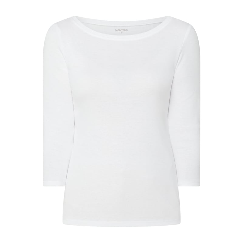 Bluzka damska MONTEGO, Czysta bawełna , Wąski krój, Okrągły dekolt , Rękaw o dł. 3/4 , Długość tyłu w rozmiarze S: 62 cm