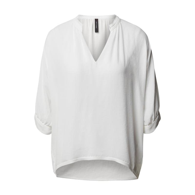 Bluzka damska Marc Cain, Wytrzymały materiał, Luźny fason, Dekolt w serek, Rękaw o dł. 3/4, Długość tyłu w rozmiarze 36: 62 cm, Długość rękawa w rozmiarze 36: 30 cm