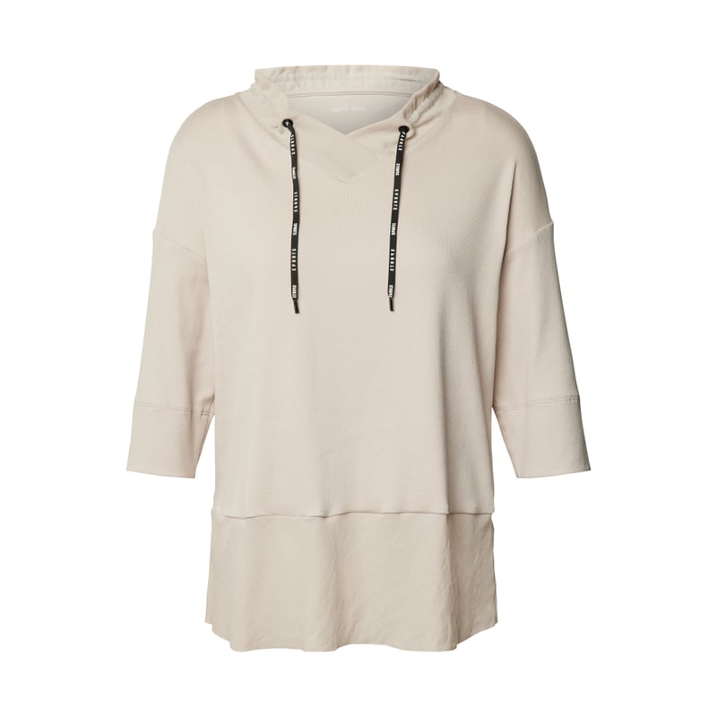 Bluzka damska Marc Cain, Mieszanka bawełny, Luźny fason, Rękaw 3/4, Dekolt w serek z tunelem, Wykończenie w kontrastowym kolorze, Długość tyłu w rozmiarze 36: 61 cm