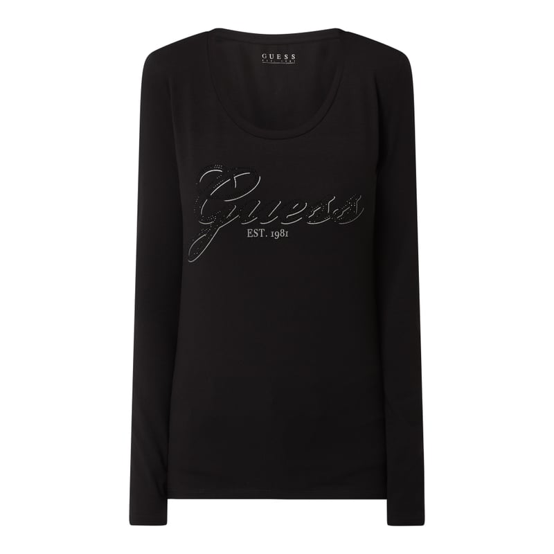 Bluzka z długim rękawem damska GUESS, Mieszanka bawełny i elastanu , Wąski krój , Okrągły dekolt , Nadruk z logo , Długość tyłu w rozmiarze S: 58 cm, Długość rękawa w rozmiarze S: 60 cm
