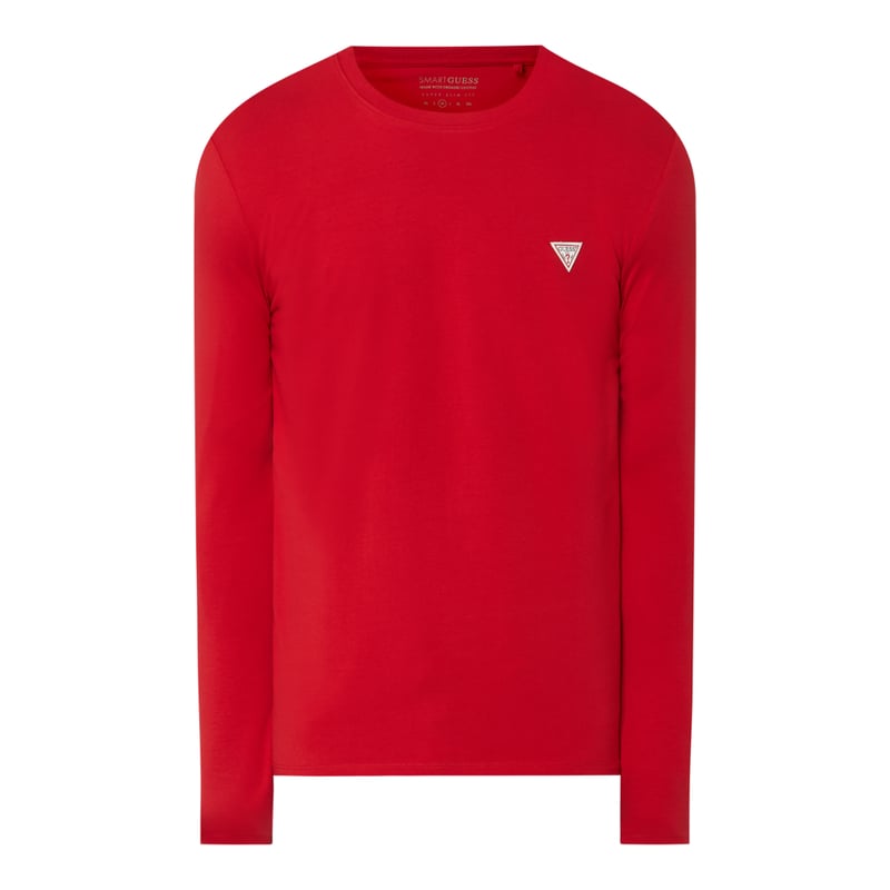 Bluzka z długim rękawem męska GUESS , Bawełna ekologiczna i elastan , Krój super slim fit , Okrągły dekolt , Detal z logo , Długość tyłu w rozmiarze M: 71 cm , Długość rękawa w rozmiarze M: 67 cm