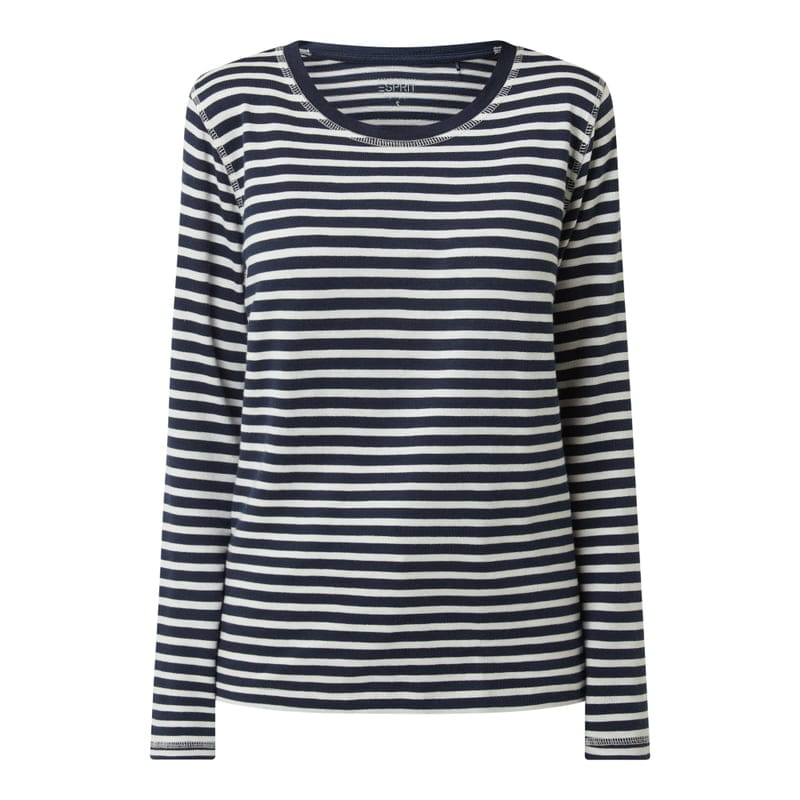 Bluzka z długim rękawem damska Esprit, Czysta bawełna ekologiczna , Prosty krój , Wzór w paski , Okrągły dekolt , Długość tyłu w rozmiarze S: 59 cm, Długość rękawa w rozmiarze S: 61 cm