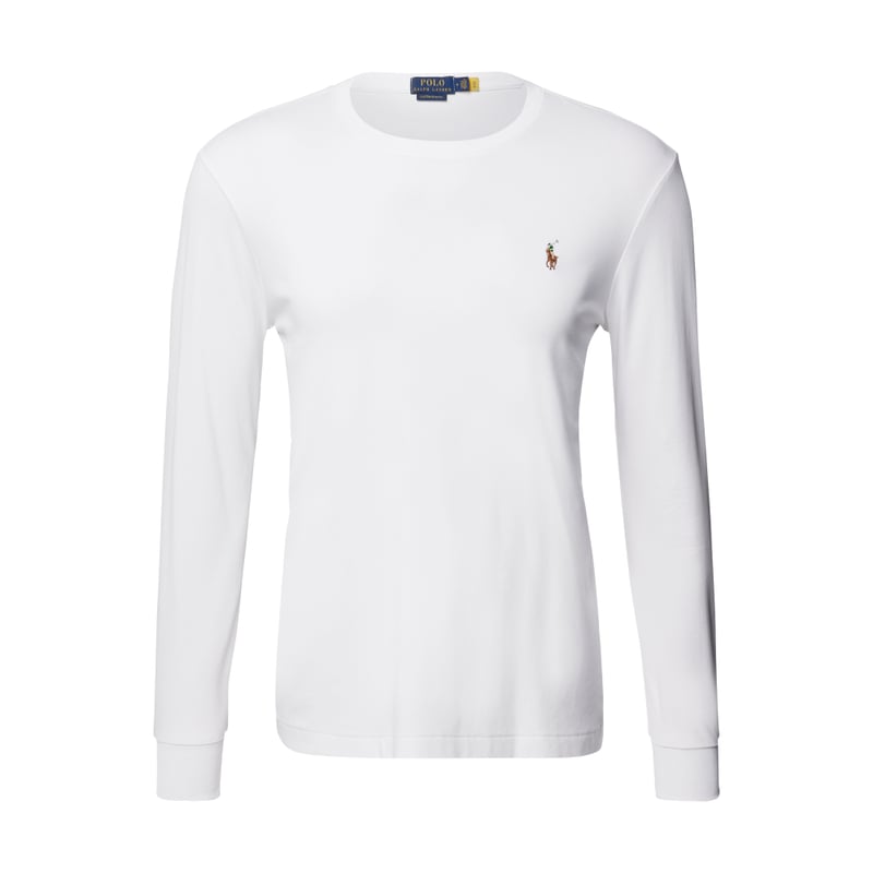 Bluzka z długim rękawem męska Polo Ralph Lauren, Czysta bawełna, Krój custom slim fit, Okrągły dekolt z prążkowanego ściągacza, Wyhaftowane logo, Długość tyłu w rozmiarze M: 72 cm