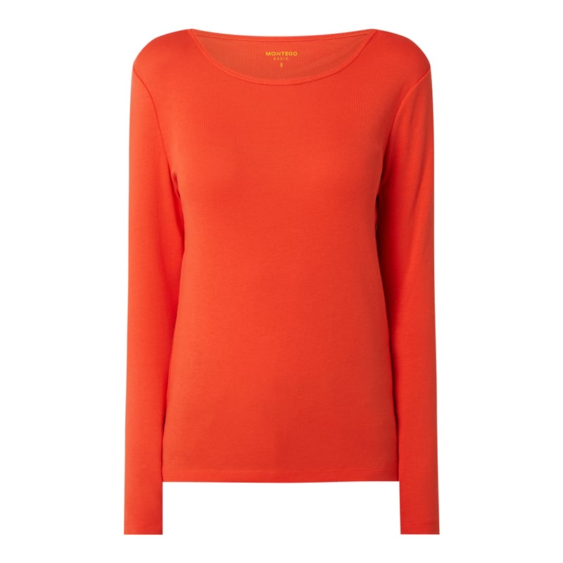 Bluzka z długim rękawem damska MONTEGO , Czysta bawełna , Taliowany krój, Okrągły dekolt, Długość tyłu w rozmiarze S: 59 cm, Długość rękawa w rozmiarze S: 61 cm