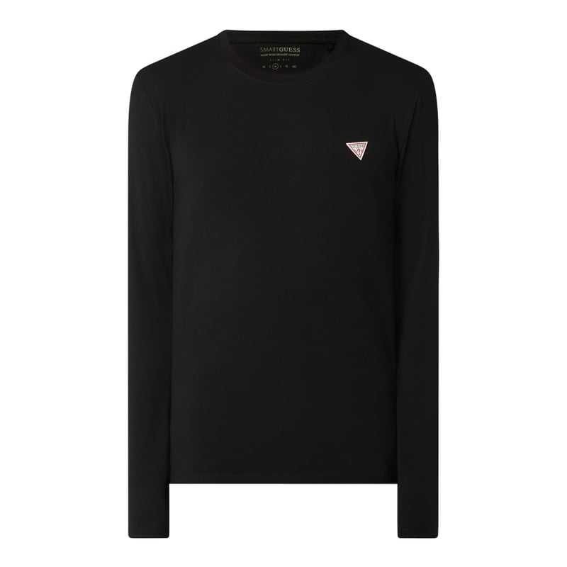 Bluzka z długim rękawem męska GUESS , Mieszanka bawełny i elastanu , Prosty krój , Okrągły dekolt , Nadruk z logo , Długość tyłu w rozmiarze M: 68 cm