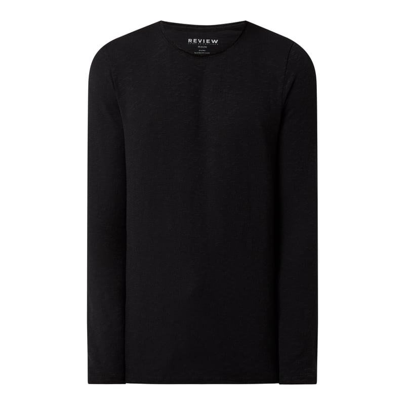Bluzka z długim rękawem męska REVIEW, Mieszanka bawełny z dodatkiem streczu , Prosty krój , Dżersej slub , Okrągły dekolt , Brzegi bez wykończenia , Długość tyłu w rozmiarze M: 73 cm, Długość rękawa w rozmiarze M: 72 cm