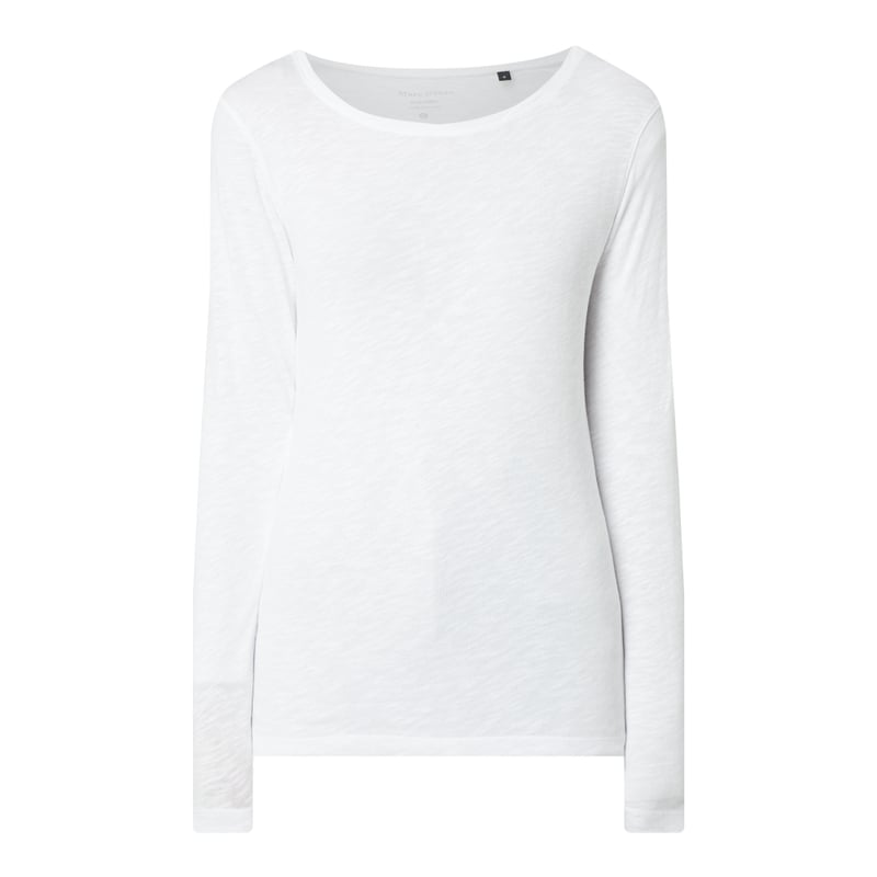 Bluzka z długim rękawem damska Marc O'Polo, Czysta bawełna, Fason podkreślający figurę, Okrągły dekolt, Długie rękawy, Efekt podpalania, Nadruk z logo, Długość tyłu w rozmiarze S: 58 cm