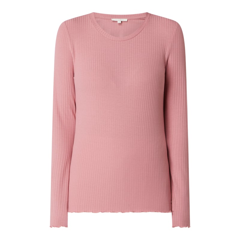 Bluzka z długim rękawem damska TOM TAILOR Denim, Mieszanka materiałów z dodatkiem wiskozy i streczu, Taliowany krój, Prążkowana faktura, Okrągły dekolt, Faliste wykończenie, Długość tyłu w rozmiarze S: 59 cm, Długość rękawa w rozmiarze S: 62 cm