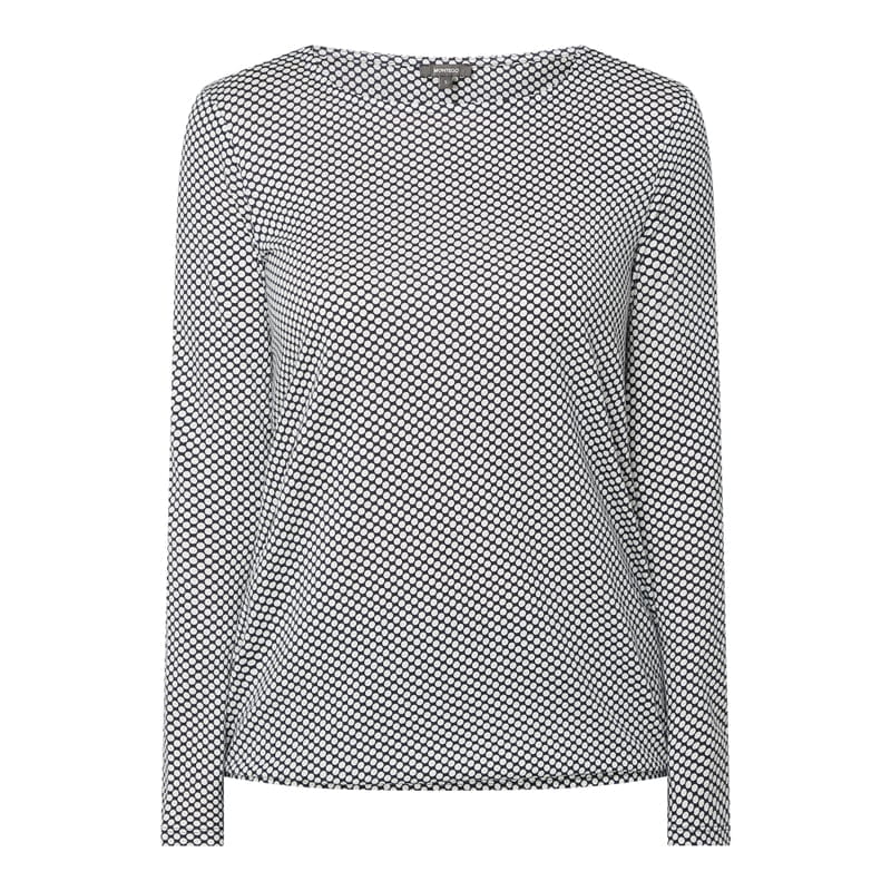 Bluzka z długim rękawem damska MONTEGO, Mieszanka bawełny i modalu, Prosty krój, Wzór w kropki, Okrągły dekolt, Elastyczny dół, Długość tyłu w rozmiarze S: 61 cm, Długość rękawa w rozmiarze S: 61 cm