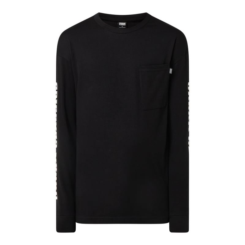 Bluzka z długim rękawem męska Urban Classics, Czysta bawełna , Luźny fason, Okrągły dekolt , Kieszeń na piersi z haftowaną wszywką z logo , Obniżone ramiona , Nadruki z logo na rękawach, Mankiety z prążkowanego ściągacza, Długość tyłu w rozmiarze M: 73 cm