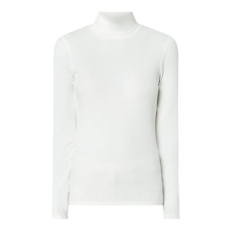 Bluzka z długim rękawem damska Maerz , Mieszanka bawełny i elastanu , Taliowany krój, Prążkowana faktura , Wywijany kołnierz , Długie rękawy, Długość tyłu w rozmiarze 36: 56 cm, Długość rękawa w rozmiarze 36: 60 cm