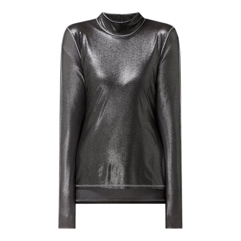 Bluzka z długim rękawem damska SPORTALM, Siateczka, Prosty krój, Efekt dwóch warstw, Metaliczny materiał, Stójka, Szwy w stylu inside out, Długość tyłu w rozmiarze 36: 60,5 cm, Długość rękawa w rozmiarze 36: 67 cm