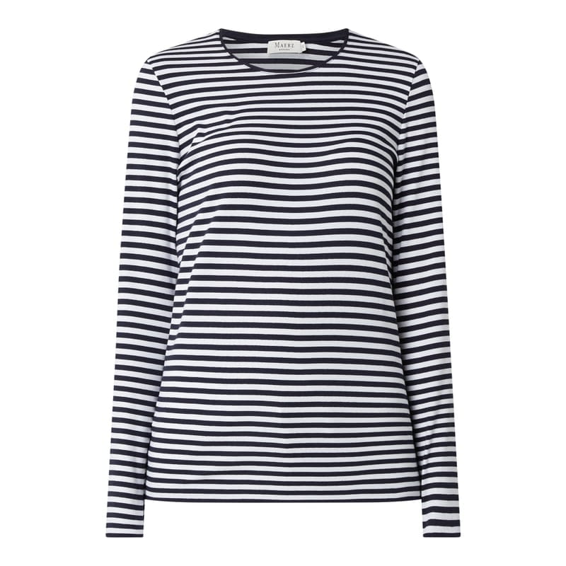 Bluzka z długim rękawem damska Maerz , Mieszanka bawełny i elastanu , Prosty krój , Wzór w paski , Okrągły dekolt , Detal z logo , Długość tyłu w rozmiarze 36: 85 cm , Długość rękawa w rozmiarze 36: 60 cm