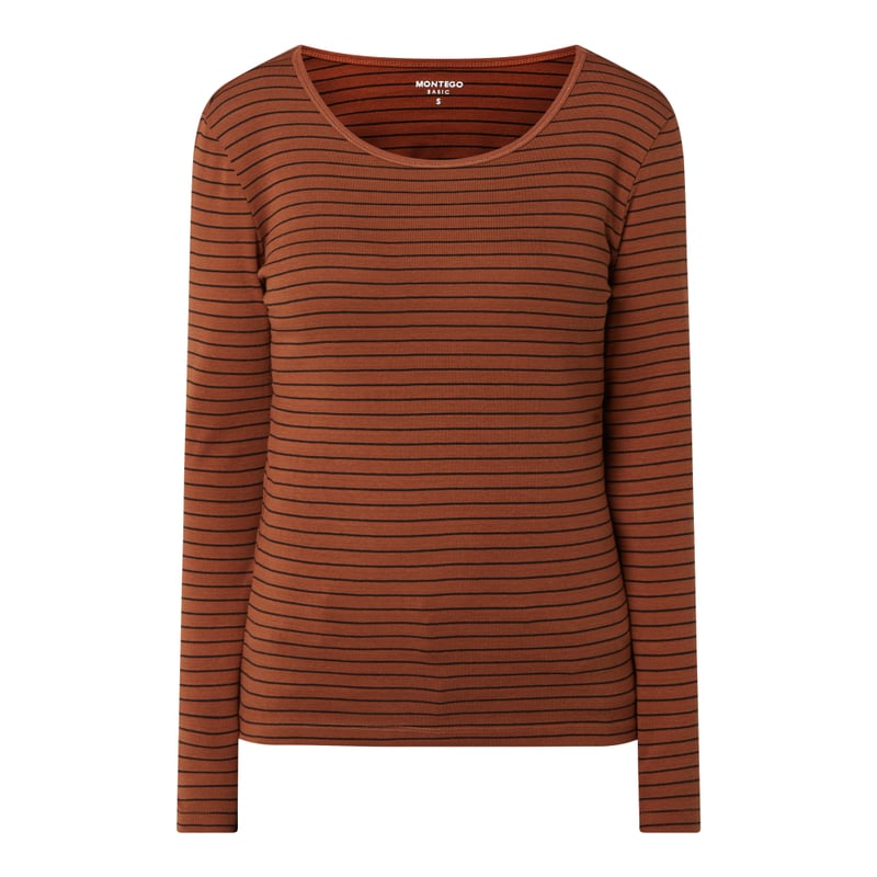 Bluzka z długim rękawem damska MONTEGO, Lekki materiał , Taliowany krój , Wzór w paski , Okrągły dekolt, Długość tyłu w rozmiarze S: 56 cm, Długość rękawa w rozmiarze S: 58 cm