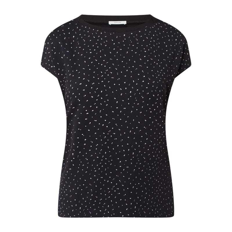Bluzka damska OPUS , Mieszanka wiskozy z dodatkiem modalu i streczu , Luźny krój , Wzór w kropki , Okrągły dekolt , Krótkie, ukośnie skrojone rękawy , Długość tyłu w rozmiarze 36: 55 cm