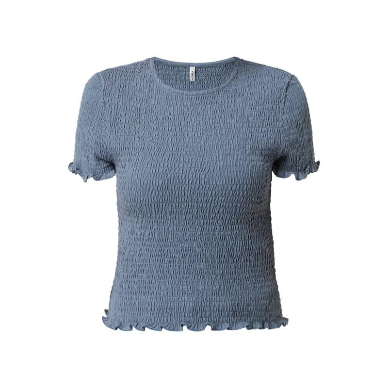 Bluzka damska ONLY , Bawełna ekologiczna i elastan , Taliowany krój , Marszczenie , Okrągły dekolt , Krótkie rękawy , Długość tyłu w rozmiarze S: 49 cm