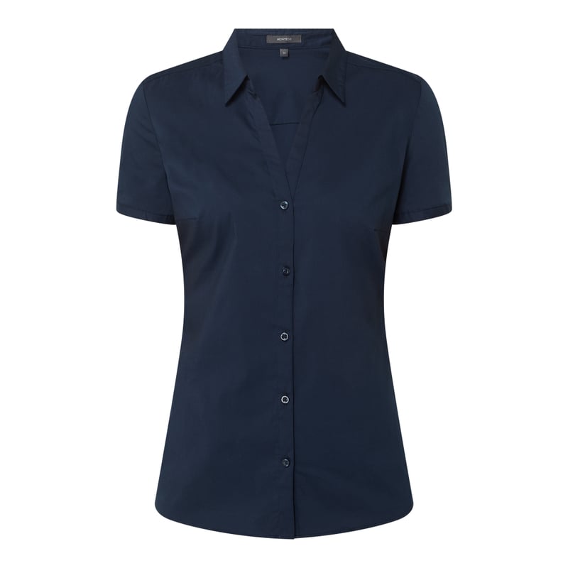 Bluzka damska MONTEGO, Mieszanka bawełny z dodatkiem streczu, Taliowany krój, Wykładany kołnierz, Krótkie rękawy , Listwa guzikowa, Długość tyłu w rozmiarze 36: 64 cm
