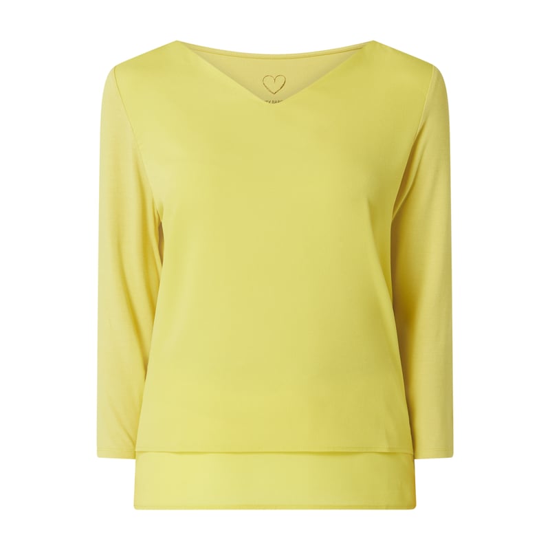 Bluzka damska Betty Barclay, Mieszanka wiskozy i elastanu , Luźny krój, Dekolt w serek , Rękaw o dł. 3/4 , Dół z efektem dwóch warstw , Długość tyłu w rozmiarze 36: 58 cm